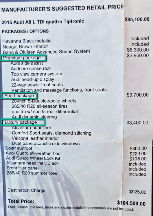 Features: PREMIUM PACKAGE; SPORT PACKAGE; LUXURY PACKAGE;