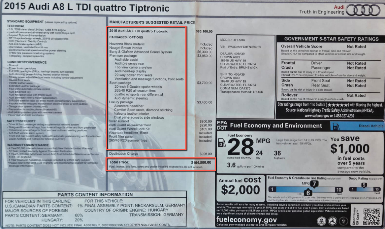 Up for Sale 2015 Audi A8 L TDI AWD /// Clean Title /// Clean Carfax /// Fully Serviced ///